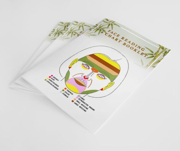 Face Reading 6 Chart Booklet Organs, Zones, Right & Left Sides, Face Shape, Chakras, Ears, & Age Map.